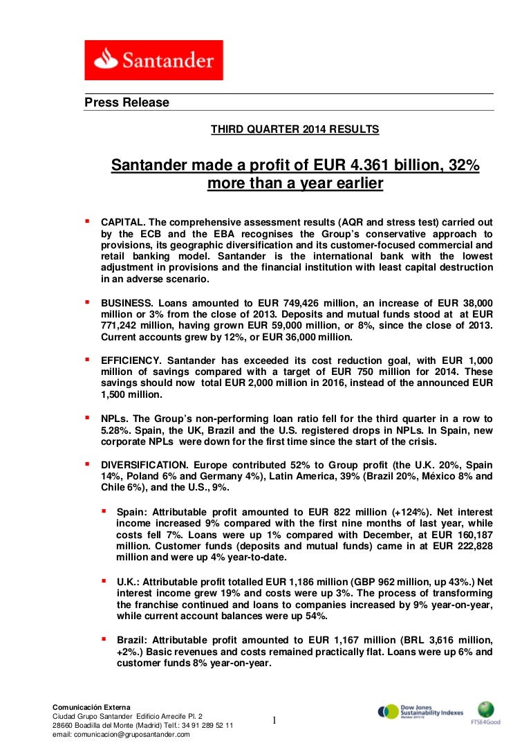 Santander Made A Profit Of Eur 4 361 Billion 32 More Than A Year Ea